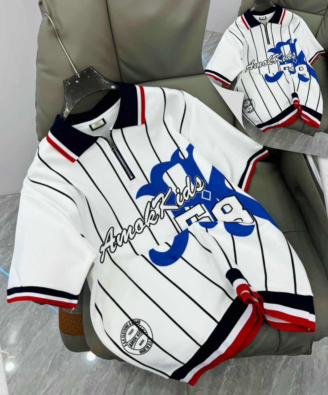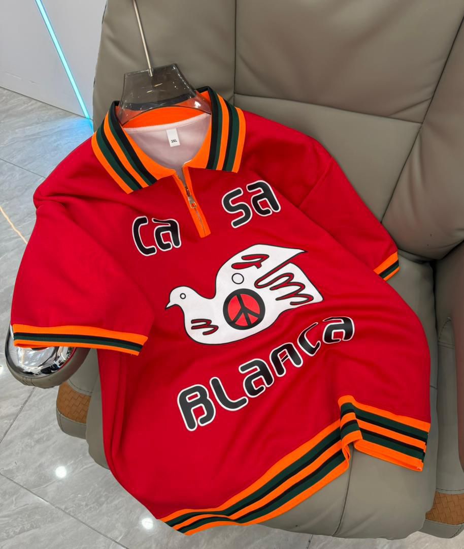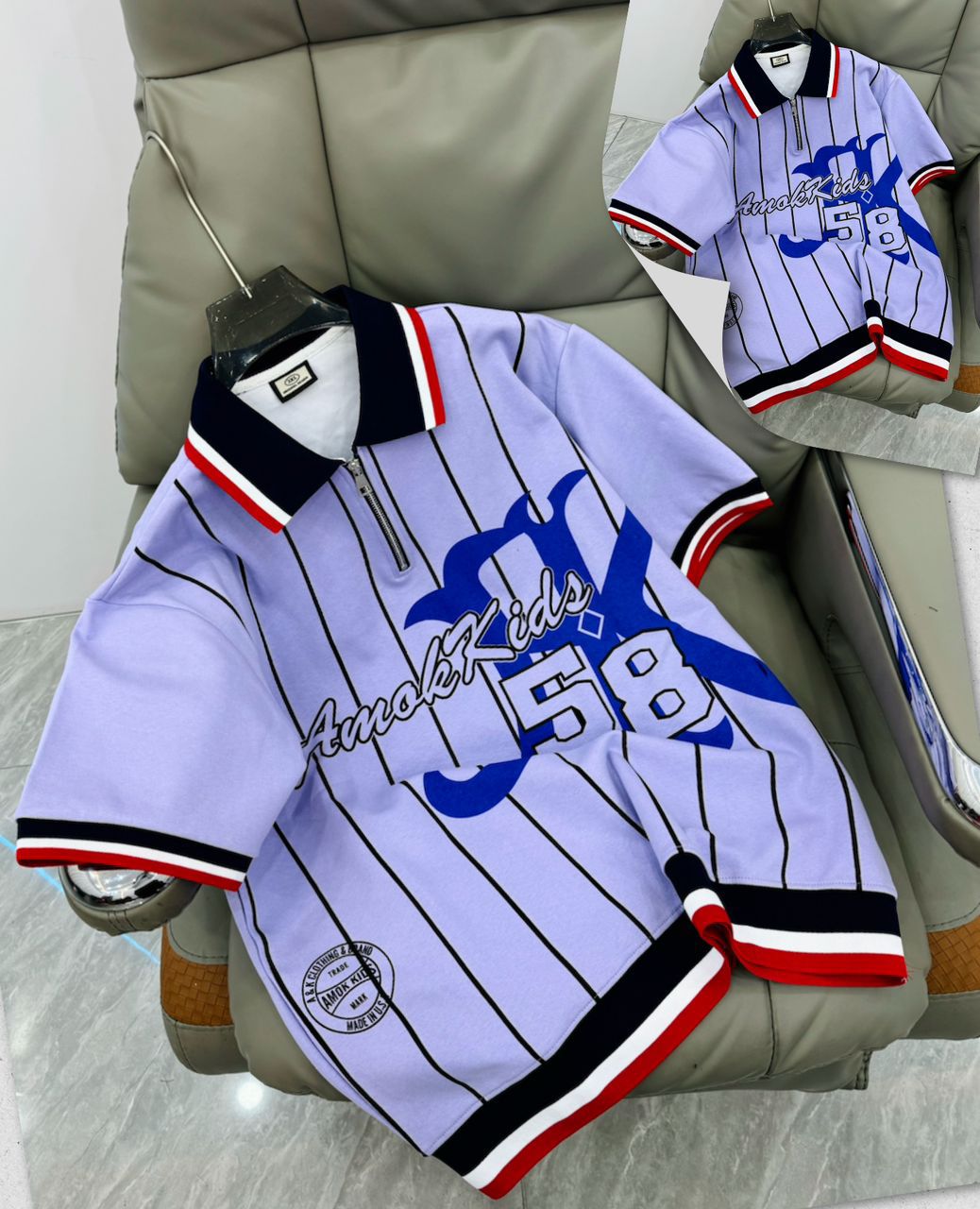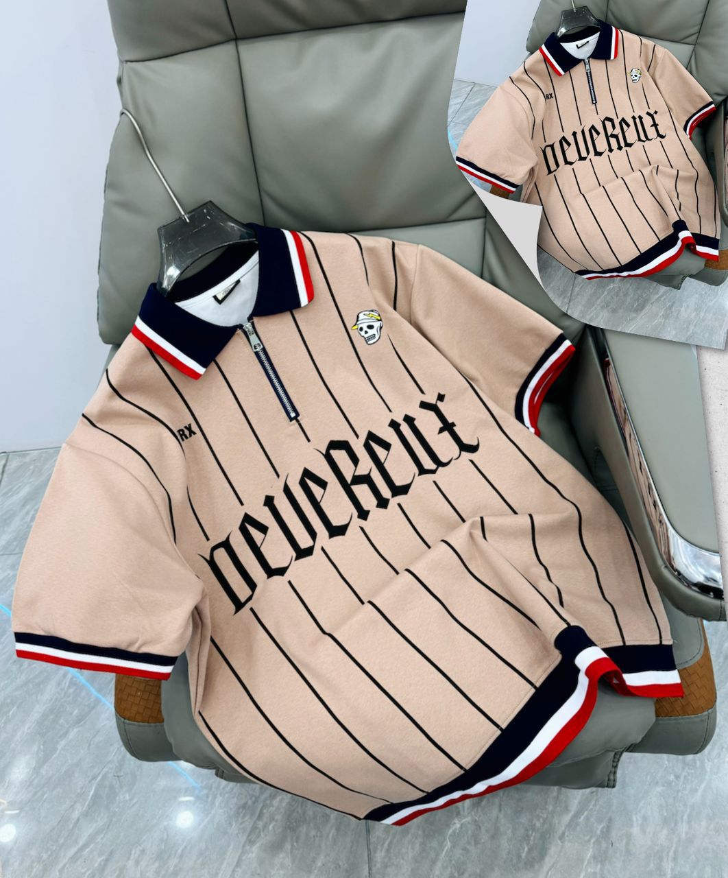 Make a bold statement with this premium red pinstripe zip polo shirt, crafted for confidence and standout style. The vibrant red base is enhanced with sleek black vertical stripes, giving it a sharp, modern silhouette.