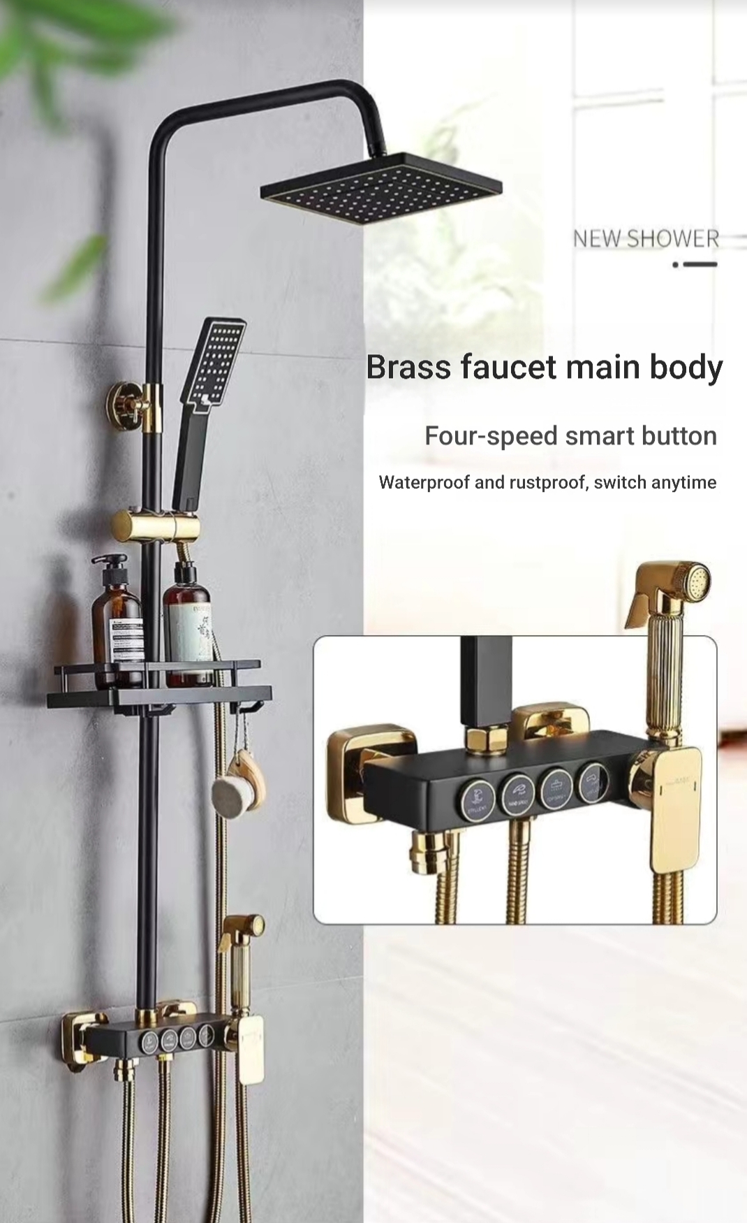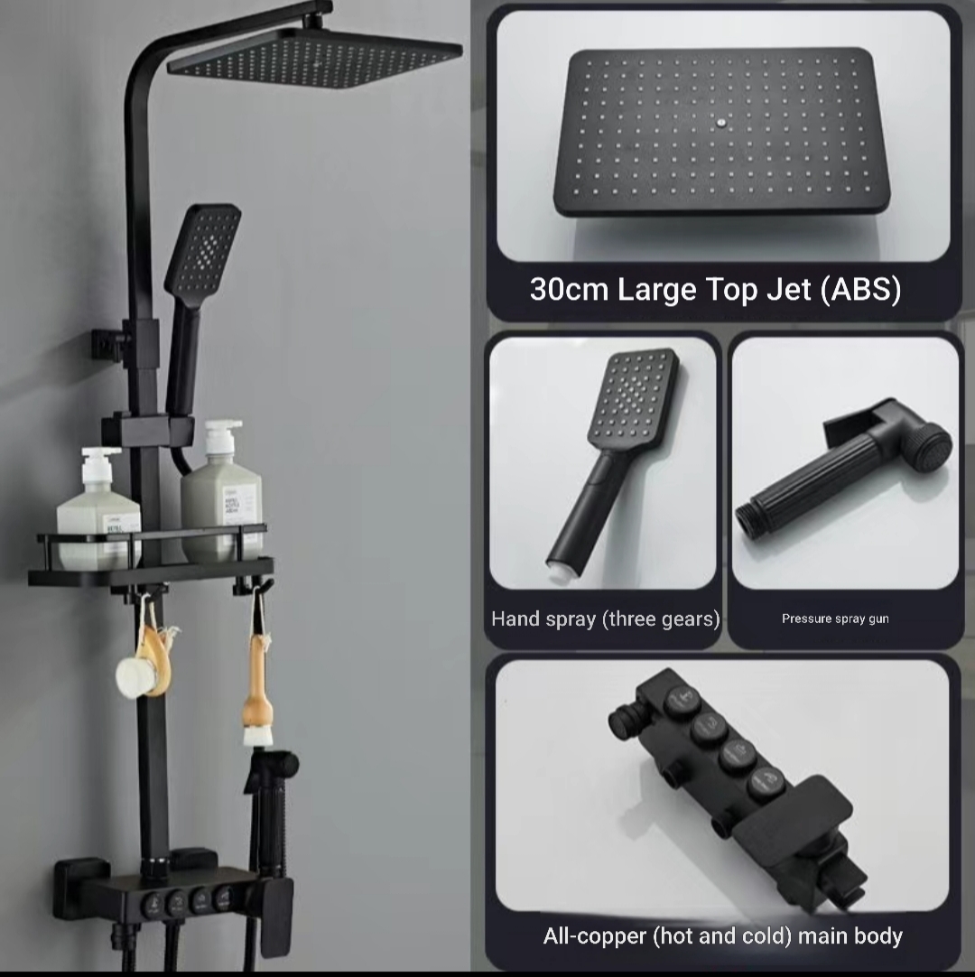 Transform your bathroom into a spa-inspired sanctuary with this Luxury Thermostatic Shower System—where elegance meets intelligent performance. Designed with a stunning black and gold finish, this premium shower set delivers a perfect blend of style, comfort, and advanced functionality.
