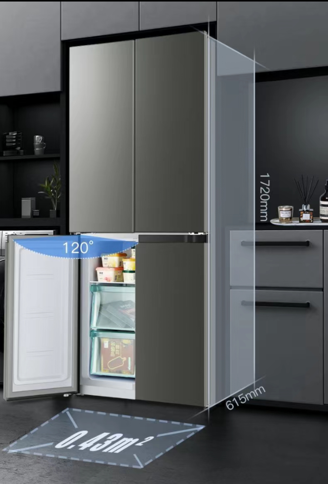 Upgrade your kitchen with the Luxora Quad-Door Smart Refrigerator, where modern elegance meets powerful performance. Designed with a sleek minimalist grey finish, this refrigerator blends seamlessly into contemporary spaces while delivering exceptional cooling efficiency.