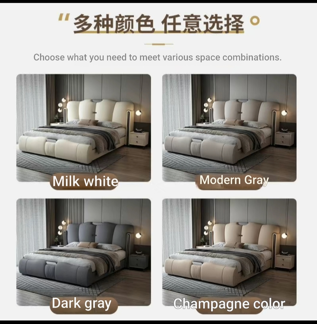 The extra-thick padded headboard provides exceptional back support, making it ideal for relaxation, reading, or entertainment. Its smooth curves and minimalist styling reflect a light luxury (轻奢) aesthetic, bringing both warmth and refinement into your home.