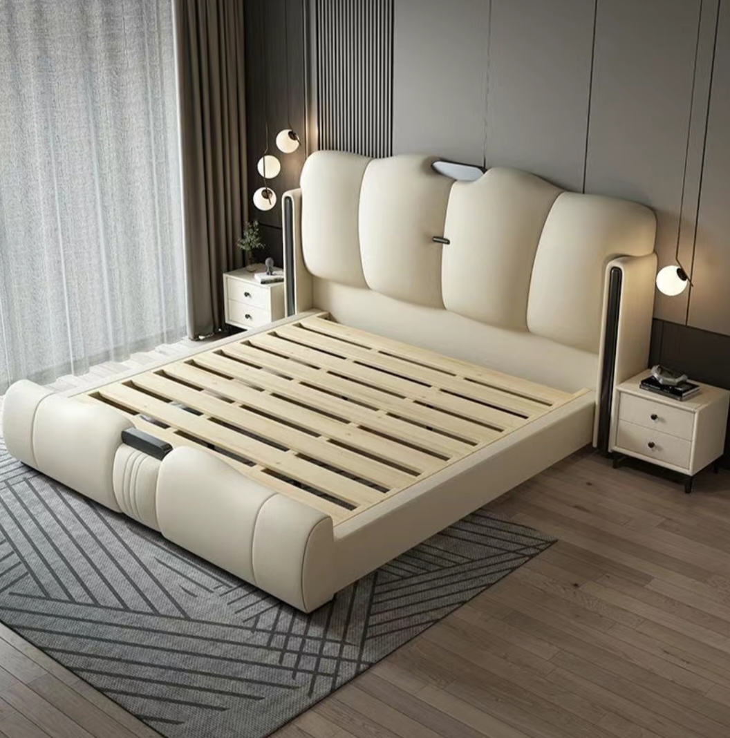 🛏️ Luxury Italian Genuine Leather King-Size Bed with Smart Storage