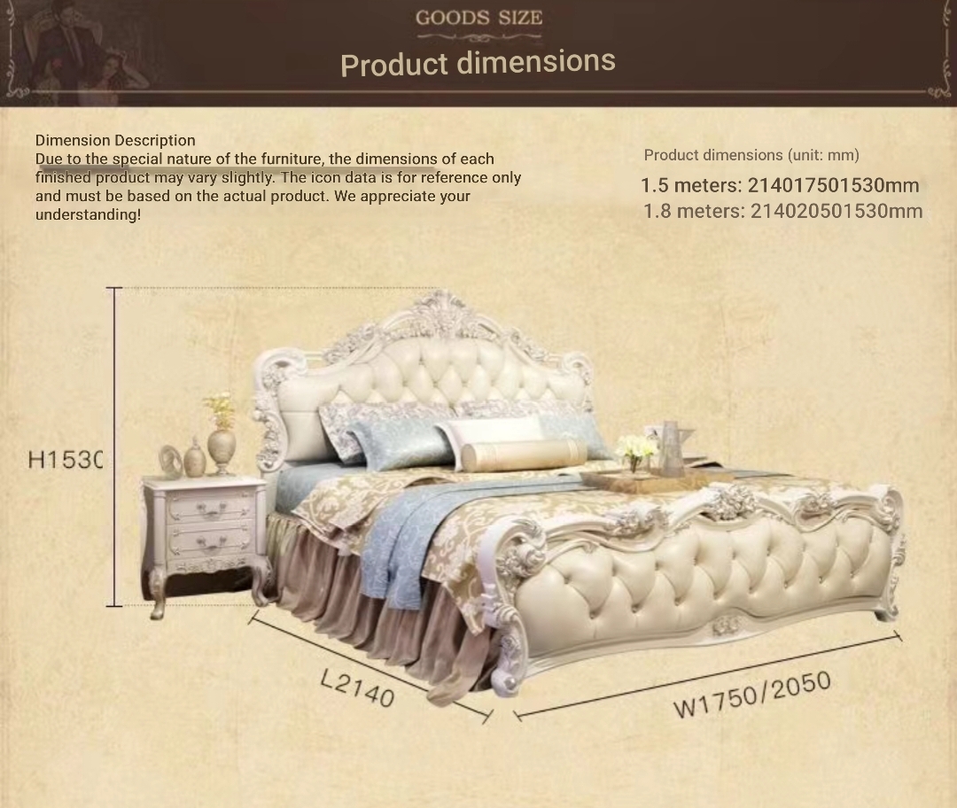 From the majestic tufted king-size bed to the ornately carved wardrobe and elegant vanity, this collection brings a harmonious balance of luxury and functionality. The soft cream-white finish, complemented by subtle gold accents and intricate carvings, creates a warm, regal ambiance that instantly elevates any interior.